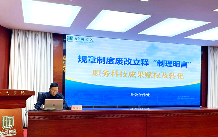 会上,陈冬花传达了《国务院关于深入实施“人工智能+”行动的意见》精神。社会合作处处长李伟涛以《职务科技成果赋权及转化》为题,对《188BET官方唯一入口科技成果转移转化管理办法(修订)》《188BET官方唯一入口职务科技成果赋权与作价入股工作指引(试行)》作系统阐释。科研处副处长王余杰结合实际案例对横向科研项目经费管理、科研业绩奖励范围、评审标准及高质量论文评价机制等内容进行了说明。